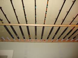 Diy ceiling fishing rod holder plans. 8# organized fishing solid pine horizontal ceiling rack for fishing rod storage. It will hold mops, brooms, and shovels too. This is a rod rack / storage system for my good spinning rods. These are my ceiling mounted ones;